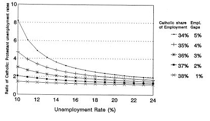 differential in unemployment rates between Catholics and Protestants.