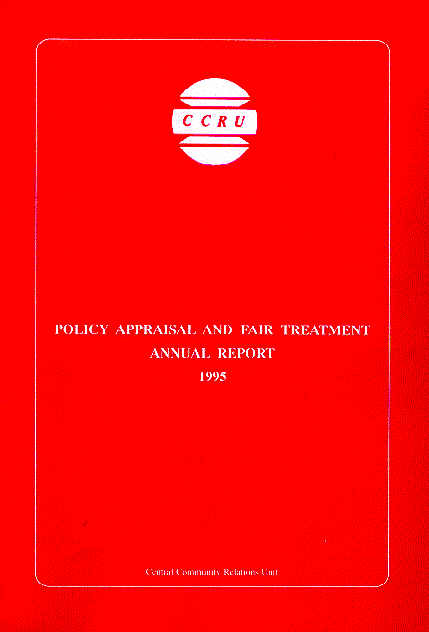 | 3.1 | The individual Departmental and Central Secretariat reports printed at Appendices 1-8 set out in detail the action taken during 1995 to identify the scope for direct or indirect discrimination in the formulation of new policies, the review of existing policies and delivery of services. This section of the main report considers each of the eight categories where potential discrimination might arise and gives an overview of developments in respect of the relevant groups.