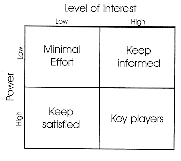 It is also important to identify your stakeholder groups and potential partners for collaborative work, how their work affects your work, and how you will relate to them. 'The needs of Councils and the requirement to engage specific client groups is considered deliberately at the planning stage and documented clearly within their CR plans'Some potential stakeholders mentioned in the Capita report were churches, District Partnerships, community and voluntary groups, business organisations, the Council itself, etc. Other stakeholders could include economic development groups, enterprise agencies, DENT, etc. This list is in no way exhaustive. You will be much more aware of your stakeholders than anyone else. At this stage you may wish to do a stakeholder analysis to identify who are your key players, who you need to keep satisfied, who you need to keep informed and with whom you need to expend minimum effort (see Appendix 1, Diagram B).