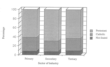 The link between status and religion within occupational categories was also found for manual occupations. Aunger illustrated this by examining the category of labourers. Within industrial groups Catholics were over-represented among labourers. However, comparison between industrial groups indicated a concentration of Protestant labourers in high status industries, such as engineering and textiles, and a concentration of Catholic labourers in low status industries, for example docks and building-contracting. Higher status industries are those with better conditions of employment and/or greater security of tenure.