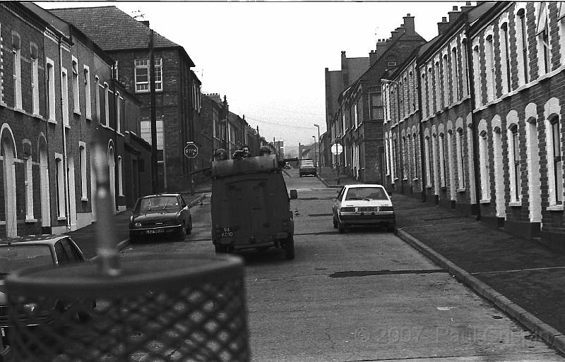 A camera man (in the lead APV) from the media filming us as we patrol the back streets of Belfast. (Paul Crispin) |