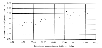 Catholic and Protestant, 1991 One of the areas where there remains a strong association between religion and housing characteristics is in connection to the public sewer; see Figure 9.6. Due to the cost involved in providing this service to isolated dwellings it is likely that there will remain substantial numbers of households who are not connected to the public system, Given the geographical spread of Catholics in the west of the region it is also likely that differentials will remain between the two main religions. Most of the difference is likely to occur in relation to private sector dwellings.