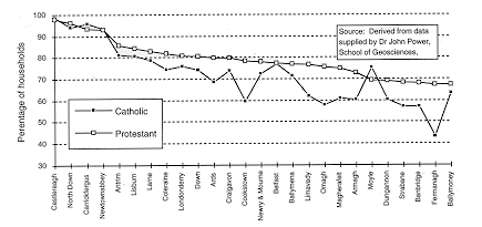 | District council area | % Catholics in area