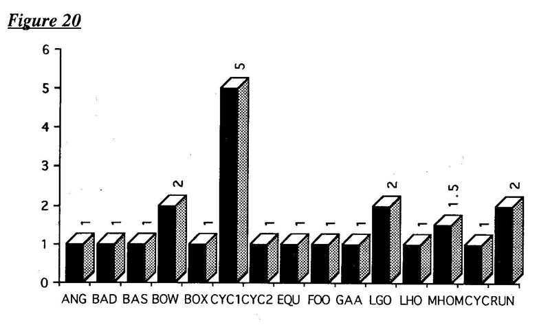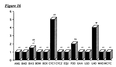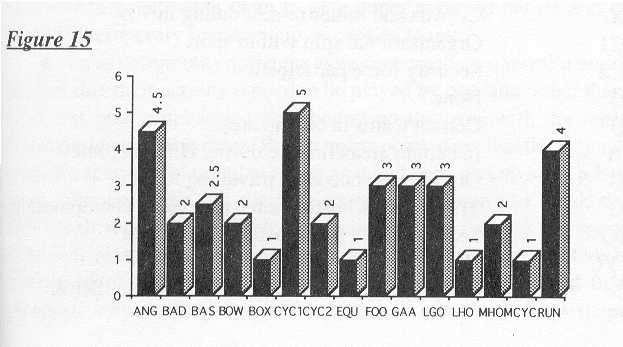 Comparisons between the average scores of individual sports have limited value since estimates often depended on the ways in which particular questions were interpreted. To illustrate this point, the difference in the scores for cycling from Northern Irelands two governing bodies need only be scrutinised. One body interpreted questions as referring to the whole of cycling within Northern Ireland whilst the other only considered those aspects of the sport under its jurisdiction.