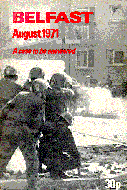 Extracts from 'BELFAST August 1971: A case to be answered' by Danny Kennally and Eric Preston (1971)[KEY_EVENTS] [Key_Issues] [Conflict_Background] INTERNMENT: [Menu] [Reading] [Summary] [Background] [Chronology] [Main_Pages] [Sources] Material is added to this site on a regular basis - information on this page may change The following extracts are from a booklet written by Danny Kennally and Eric Preston. The views expressed in these extracts do not necessarily reflect the views of the members of the CAIN Project. If anyone knows who currently holds copyright for this pamphlet please contact the CAIN Project. The CAIN Project would welcome other material which meets our guidelines for contributions.