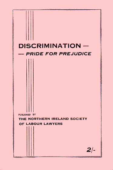'Discrimination - Pride for Prejudice', Published by The Northern Ireland Society of Labour Lawyers (August 1969)[Key_Events] [Key_Issues] [Conflict_Background] DISCRIMINATION: [Menu] [Reading] [Summary] [Background] [Chronology] [Main Pages] [Sources] The CAIN Project has been unable to locate an individual or existing organisation retaining copyright for the following publication. If anyone has any information regarding copyright for this publication, please contact the Project Manager.