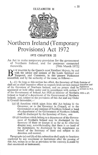 Short title.3. This Act may be cited as the Northern Ireland (TemporaryProvisions) Act 1972.
